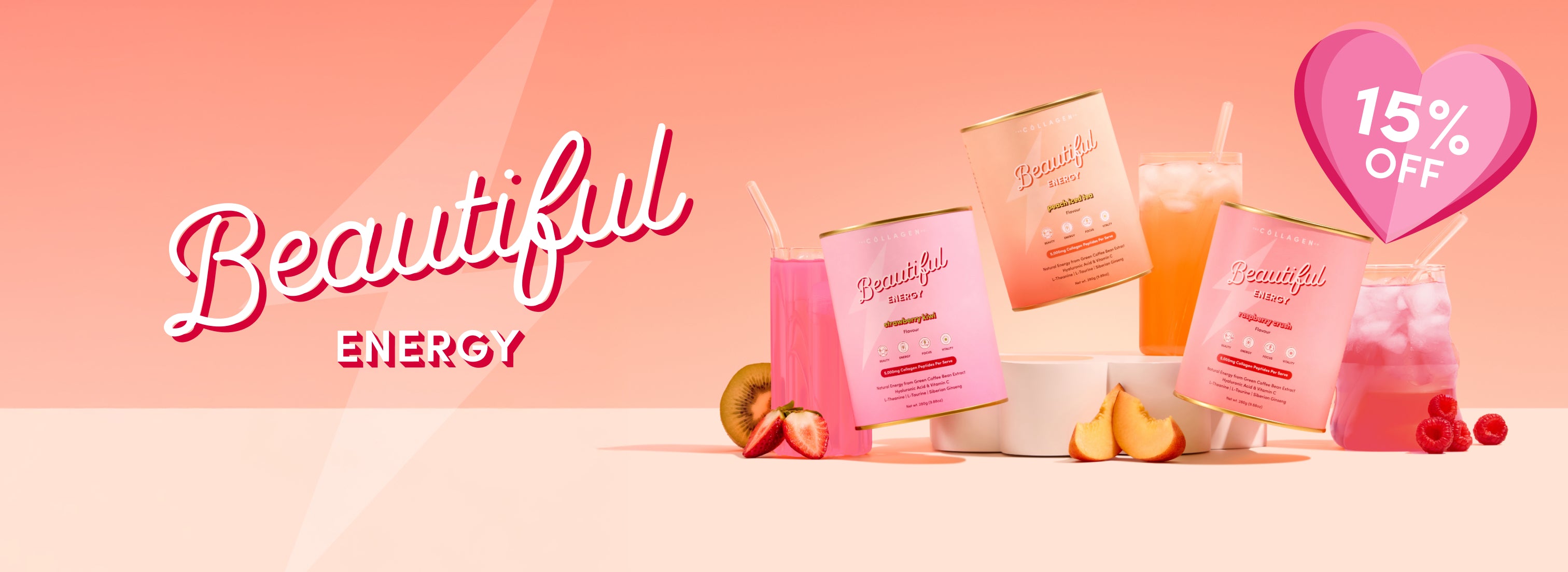 Beautiful Energy is a glow-first energy drink formulated to support focus, skin health, and gut comfort, without the crash, jitters, or artificial junk found in typical energy drinks. It’s powered by clean, natural ingredients like green coffee bean caffeine, hydrolysed collagen peptides, adaptogens, and vitamins to help you feel good and look great.