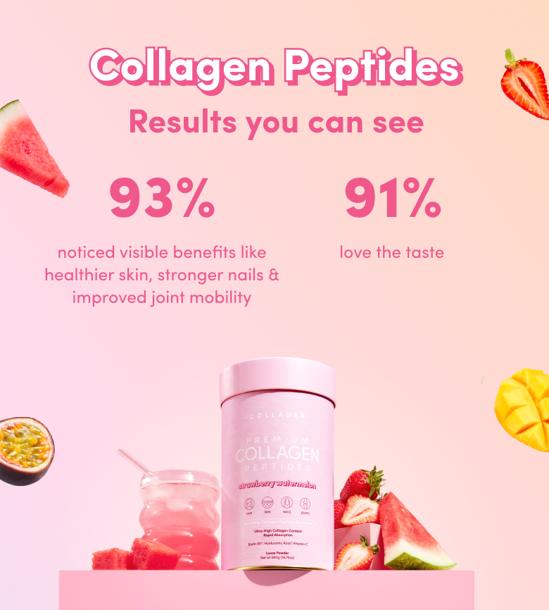 For the ones looking for something that tastes just as sweet as collagen’s beauty and wellness benefits… we present Strawberry Watermelon.