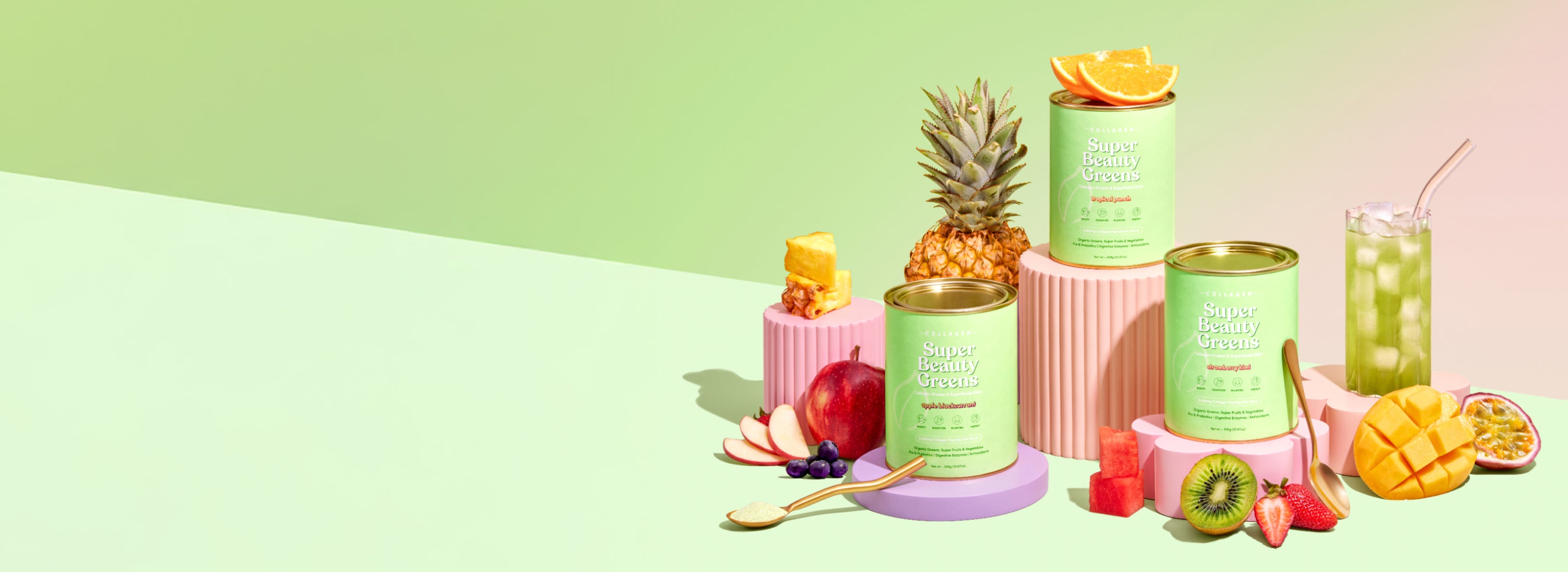 Our collagen greens are fruity and refreshing with NO grassy aftertaste!