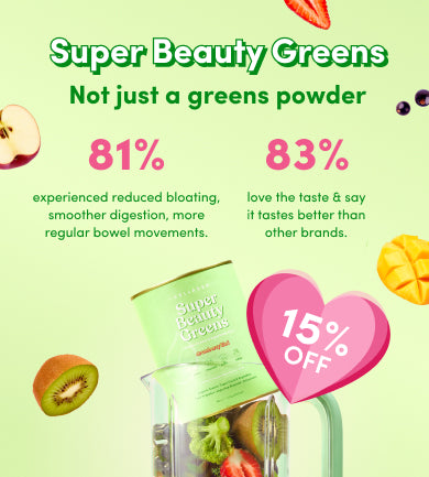 Our Super Beauty Greens contain 5 Organic Greens (Spirulina, Chlorella, Alfalfa Grass, Wheat Grass, and Barley Grass) from land and sea, chosen for their amazing benefits. They help you sneak in hard-to-get nutrients in your daily diet, support your body's natural detoxification processes, and bolster your immune health.
