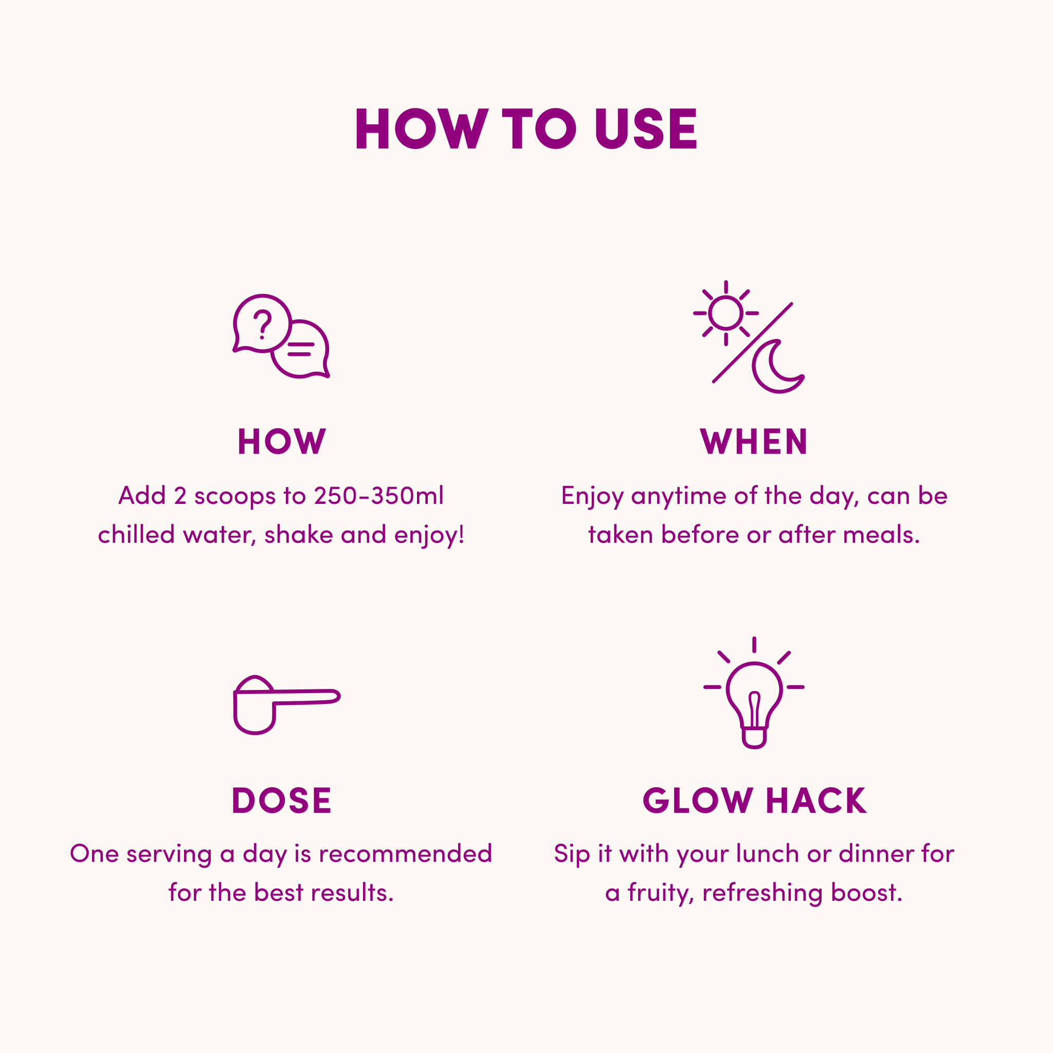 - Hydrolysed bioactive collagen from grass-fed, pasture-raised bovine. A tailored blend that stimulates type 1, type 2, and type 3 collagen. Combined, these promote healthy hair, skin, and nails, improve joint function, and support gut health.