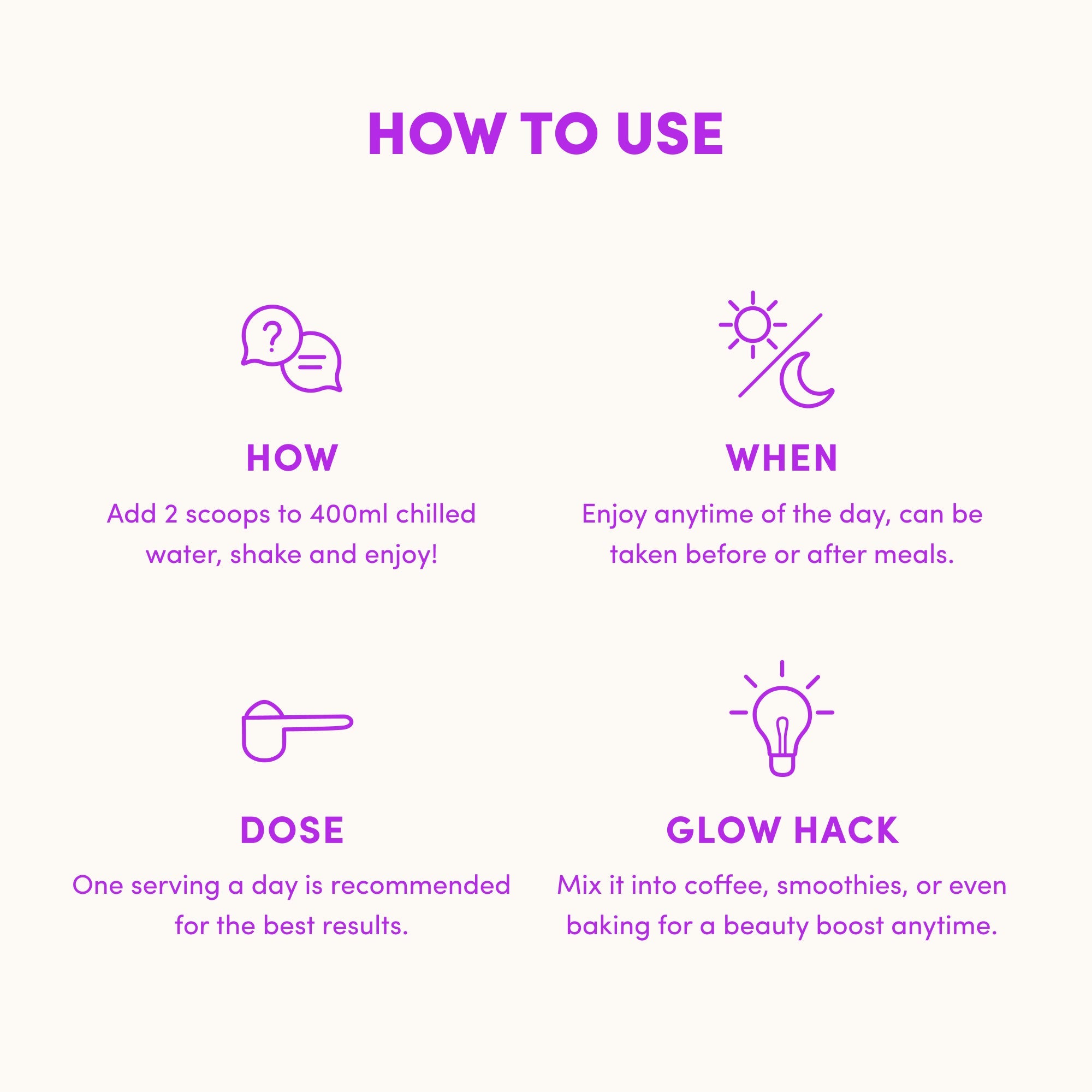 Mix it into coffee, smoothies, or even baking for a beauty boost anytime.