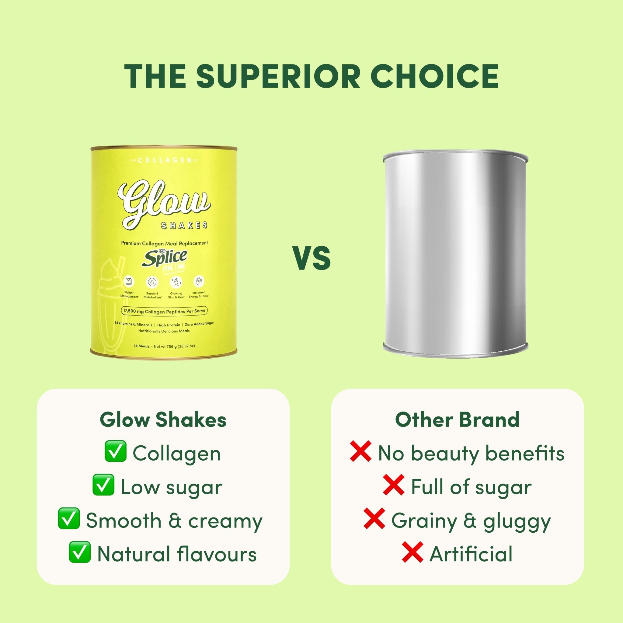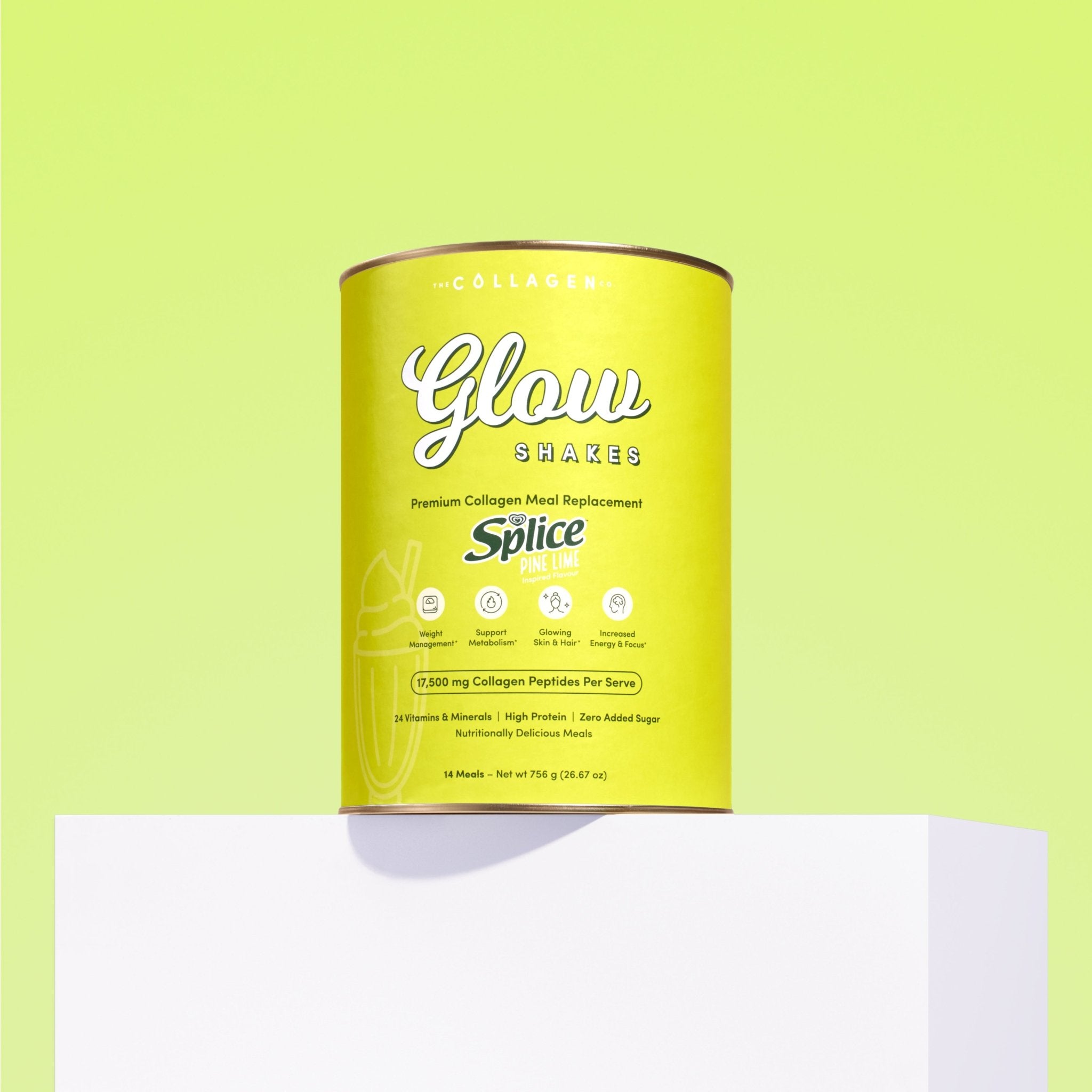 Say hello to your childhood favourite, reimagined the Glow way. Our NEW Splice Pine Lime Ice Cream shake blends zesty lime, sweet pineapple and creamy ice cream into a refreshingly smooth Glow Shake. Powered by collagen to support glowing skin, hair and nails, and enriched with gut-loving ingredients to support digestion, this delicious shake helps nourish your body from within. Light, tropical and irresistibly creamy, it’s one easy, satisfying drink packed with a whole lot of goodness.